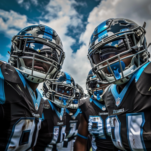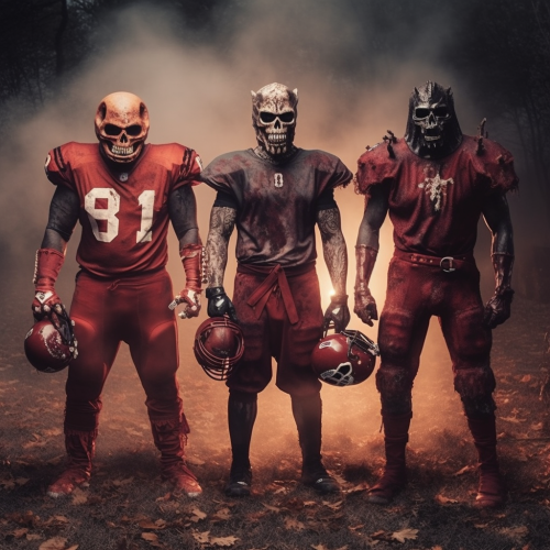 a high school American football player, running the football in a game, football field, stoic background, photorealistic