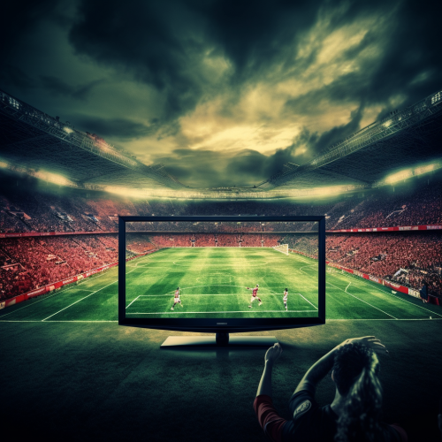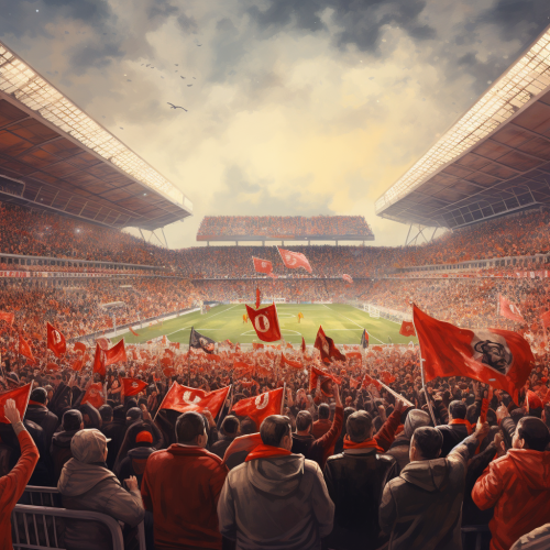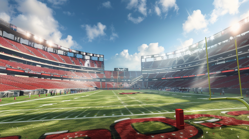 an american football stadium with red seats, photorealistic, --ar 16:9