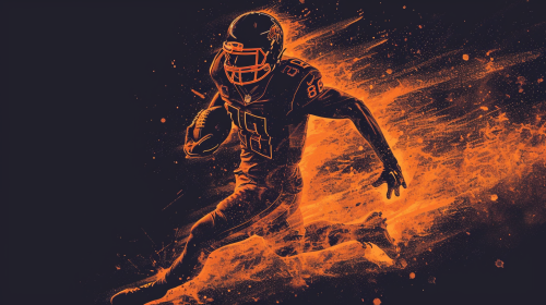 Burnt orange vector logo, American football player figure, 8k, hd, black background, 8 bit --ar 16:9 --v 6.0 --s 250