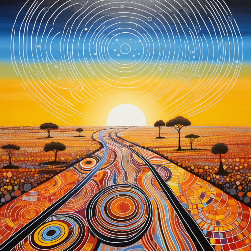 Aboriginal painting sustainability circles destination road horizon bright