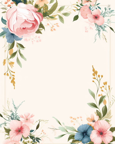 Elegant wedding invitation card featuring [a delicate floral border] on [a soft cream] background, in the style of classical elegance, ornate calligraphy, warm and inviting color palette of blush, gold and cream, central space showcasing [the names of the bride and groom, date, and venue details] in elegant script, decorative motifs of love birds and intertwined rings, subtle textures, --ar 210:148 --s 250 --v 5.2