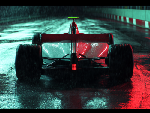 4k futuristc formula one car flying around racetrack --ar 16:9