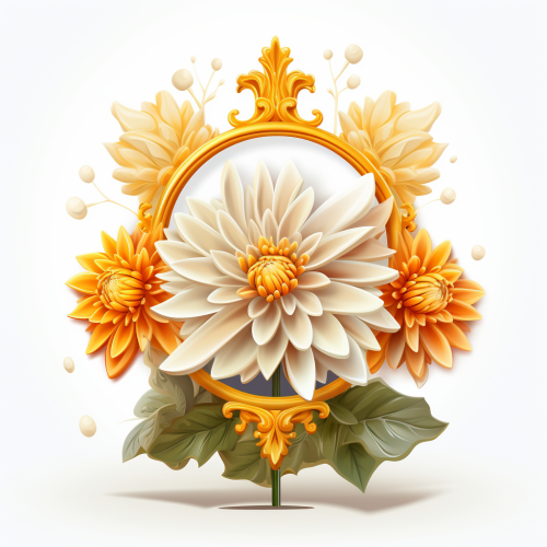 vector illustration, art print, beautiful mirror, Cartoon style, chrysanthemum, logo, Pixar style, white background, , 3d