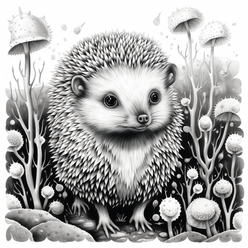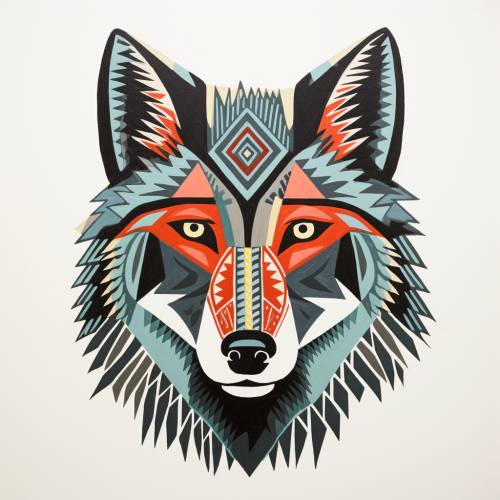 folk art, linocut fine art print of a wolf, fine line details, playful portrait