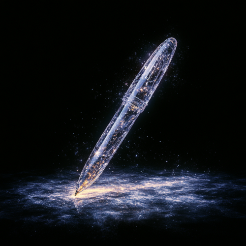 A photo real Fountain Pen, transparent jelly like and huge ink pot, surrealism, half image, half tone dots, intricately detailed --style raw --s 750 --p ef1cw5c