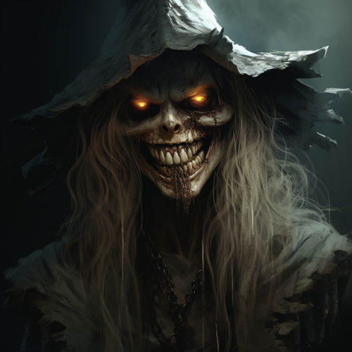 a old hag witch is disapproving of Halloween, looking loathed, d&d, fantasy, photorealistic, dark ambiance