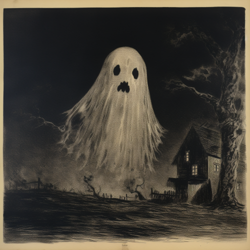 Bold outline coloring page illustration of Cute Ghost Carolers – Draw round, floating ghost figures with bold outlines. They are singing carols with large, circular eyes and open mouths. In the background, add a simple snowy town scene with a few minimal, bold-lined houses and street lamps. The ghosts’ scarves and hats flap gently in the wind, with one ghost holding a sheet of music. Everything is outlined with bold, black lines and kept super simple