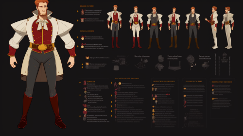 character sheet containing magical space nobility characters t-posing --ar 16:9