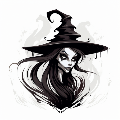 10 unique Icons based on halloween, use inspiration from items such as a witches cauldron, a witches hat, a black cat, a black cat with a witches hat, a mummy, and a potion. Each should try to make use of vivid colors like green and purple. Dark clean bordering outlines