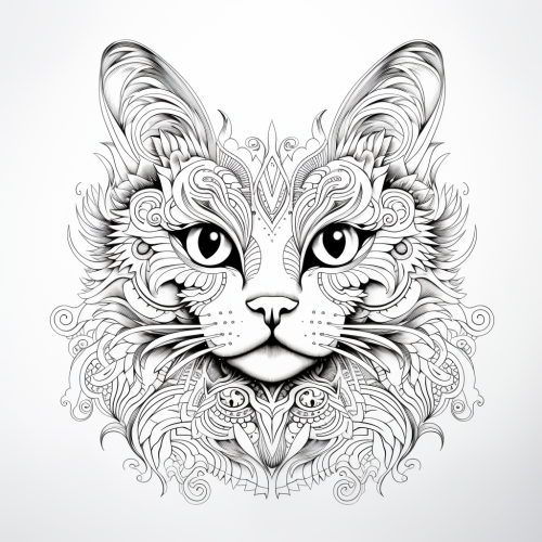 coloring page, crisp lines,white background,mandala Abstract Cat Art, ar 17:22, 1 bit graphic, simplified