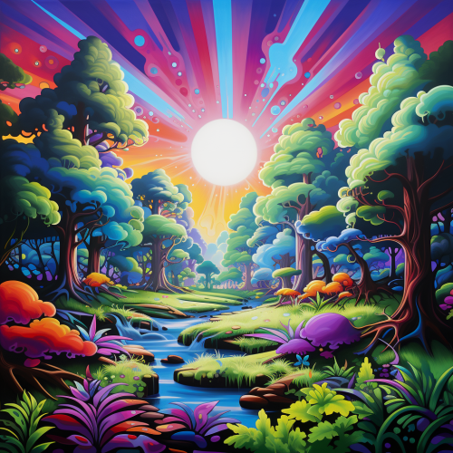 Illustration of a sequoia, in the style of Lisa Frank, colorful, beautiful --chaos 37 --ar 9:16 --stylize 223 --weird 50 --v 5.2