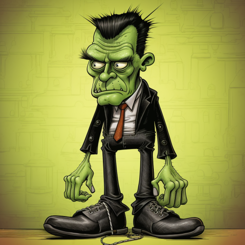 Tour poster. Frankenstein’s monster driving s an American hot rod , With space for text in the bottom. With a little bit of neon colors, Borders around the poster with grim ornaments, grim dark art, 1940s horror comic book stye. knives, bats and snakes --v 6.1