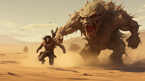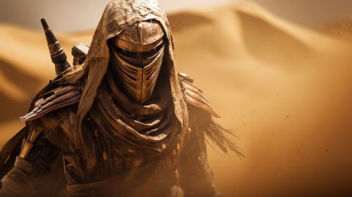 Fremen warrior woman in desert sand