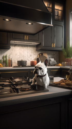 a french bulldog that is the same colours like stitch from lilo & stitch, realistic