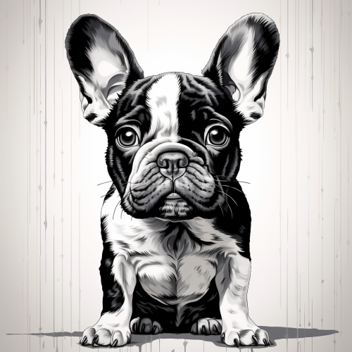 a French bull dog big expressive eyes, black and white illustration head portrait with a realism style in doodle art coloring book style with elegant black lines , filled with intricate shapes, --ar 3:4 --v 5.2 --s 750