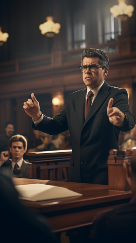 American elite lawyers argue in court, High and short depth of field, Dadaism, UHD, high detail --ar 9:16