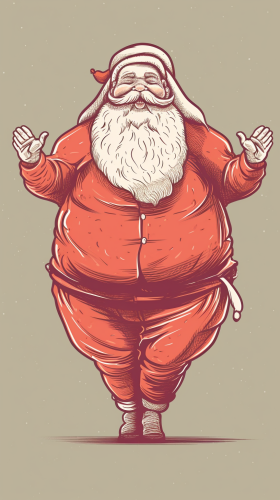 plump Santa Claus doing yoga while standing. Illustration, hand drawn, --ar 9:16 --v 5.0