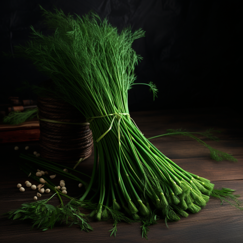 photo of a lot of fresh equisetum arvense field horsetail on the dark table from the side, fresh equisetum arvense field horsetail in the background, dark green colors