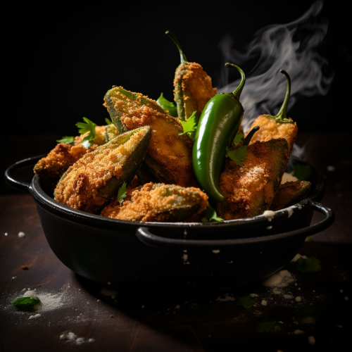 dramatic lighting, contemporary, modern style, high contrast, close up food photography image of fried jalapeno poppers --v 5.2