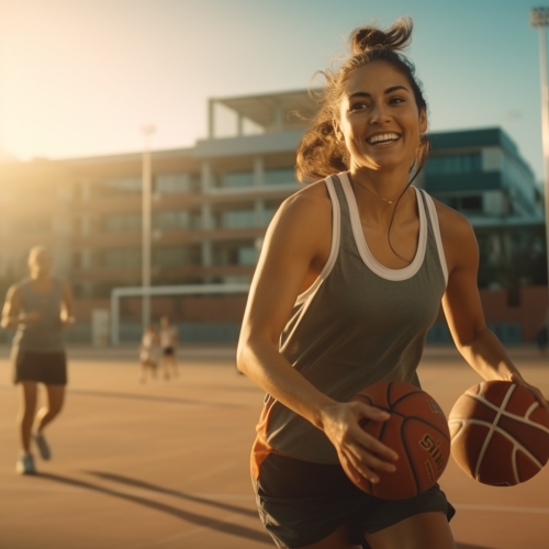 An inspiring scene featuring young athletes training on a bright, open field under a clear sky. They are working hard, showing determination and teamwork. In the background, there are coaches watching and offering guidance, symbolizing the support system helping these athletes succeed. The image conveys a sense of hope, growth, and ambition, with the athletes striving for excellence and a brighter future. The setting feels motivational, with a modern and clean design aesthetic, capturing the essence of empowerment and opportunity.
