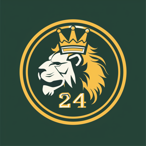 modern logo for a beer pub crawl. It contains the number 24 and also a crown and a lion head. Round logo with a border --v 6.0 --s 200 --style raw