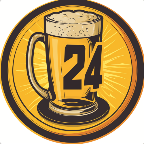 logo for a beer pub crawl. It contains the number 24. Round logo with a border --s 120 --c 45 --v 6.0 --style raw