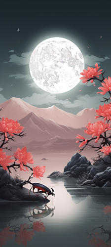 A Crab beside a moonlit pond, where a Chinese Dragon is subtly reflected in the water, symbolizing Cancer's deep emotions and the introspective journey of the Jiachen Dragon Year. words with '2024', '新年快乐', v 6.0 --ar 9:20