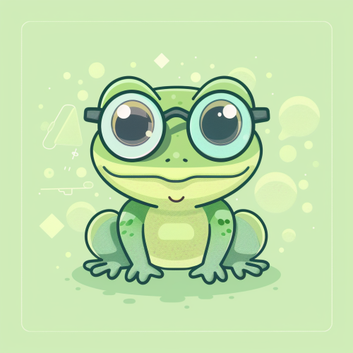 Design a Kawaii-style logo for 'Clever Frog' feature an adorable, intelligent frog character wearing stylish glasses, symbolizing wisdom. Incorporate elements of contact center automation and AI, such as subtle circuitry patterns or speech bubbles with binary code. Use soft pastel colors and clean lines typical of Kawaii art. The overall design should be modern, friendly, and convey innovation in AI-driven contact center solutions. --v 6.0