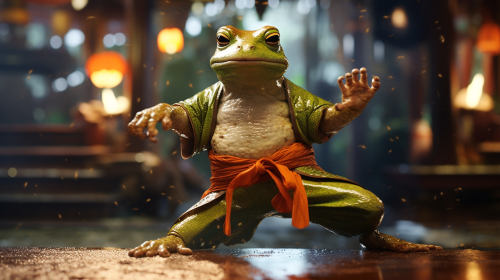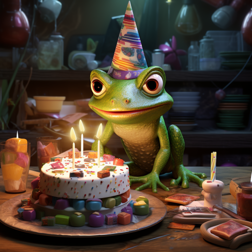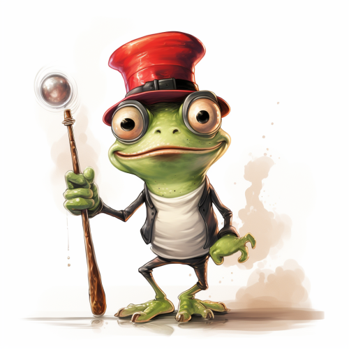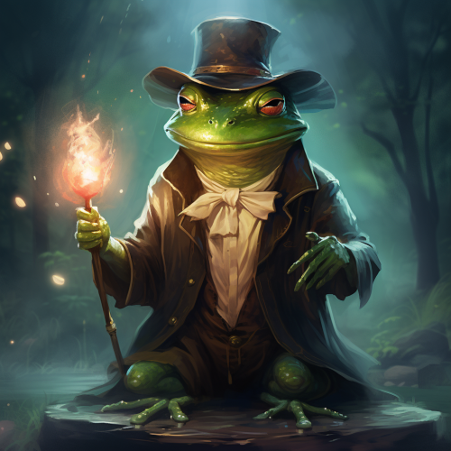 frog warlock in cartoon a realistic style. study as the background.