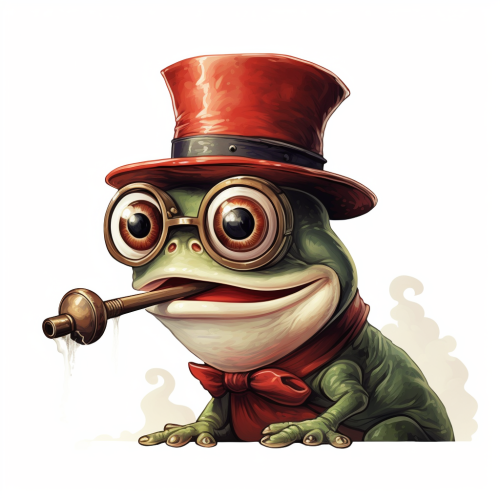 Cartoon of a frog, blowing a red whistle, hat, eyeglass. white background