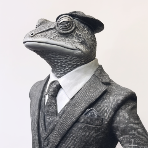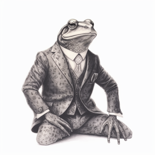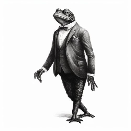 a frog in a suit full body side view, white background, charcoal folk art --v 5.1 --s 250