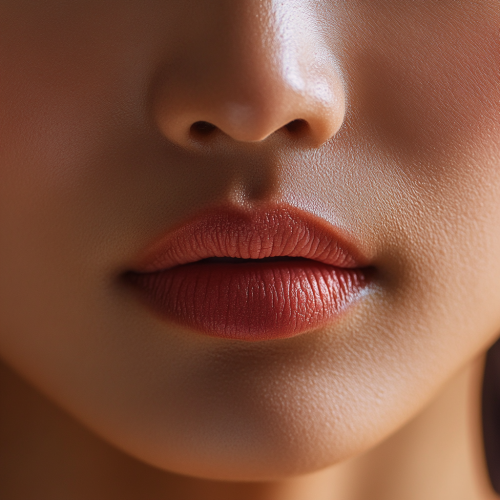 : Frontal view of Southeast Asian woman’s plump pink lips, photorealistic, high-definition, perfect texture and details, subtle skin pores, soft lighting, high-quality photography, 85mm lens, natural color grading, ultra-sharp focus, cinematic tone.