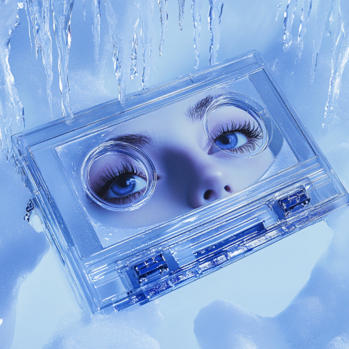 ultra realistic frozen futuristic and bionic queen made of ice , into darkness , molecules , black white and blue , frozen , ice --ar 91:115