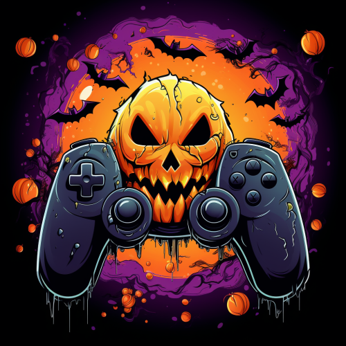 a Halloween game controller with a mouth, splats, cartoon vector 4k