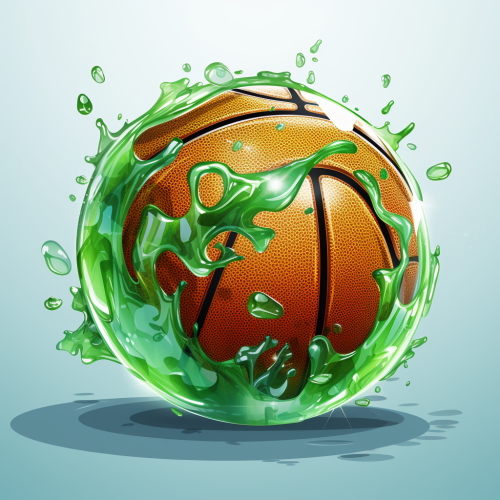 Basketball covered in ice with blue splats