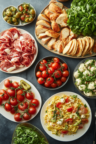 background of cookbook ''Quick and Easy Keto Potluck You Can Throw Together Recipes'' --no text fonts letters watermark words typography slogans signature --ar 2:3 --v 6.1