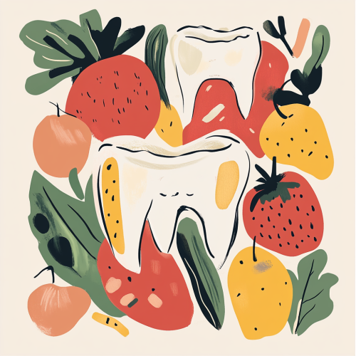 Fruit-inspired teeth artwork with clean lines and shapes.
