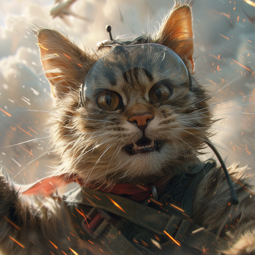 cats flying war planes, anger, front camera, hd, realistic --v 6.0 --s 750