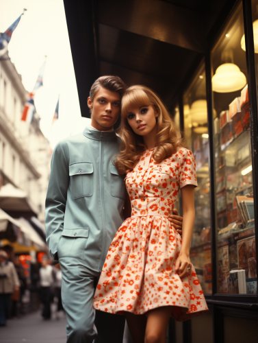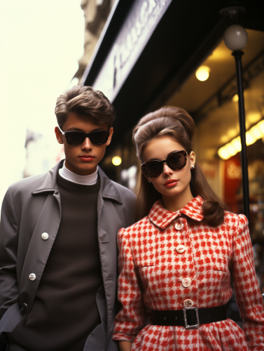 boy & girl in 60's youth culture fashion, on the london street, full body shot, photo by Ellen Von Unwerth --s 800 --ar 3:4 --v 5.2