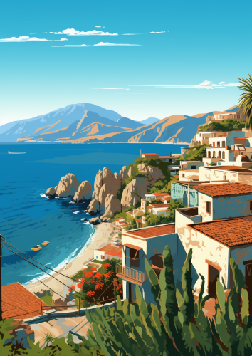 cabo san lucas on a sunny day in vector art, clear blue sky, strong detailed colors , super realistic 4k --ar 5:7 --v 5.2