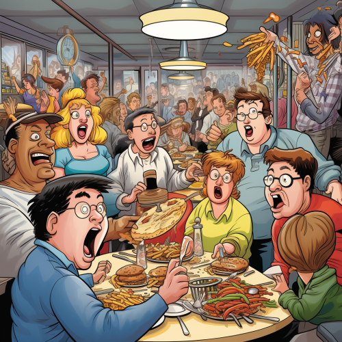 #104149 Image of shimmering, animated, cool gift postcard with space, cute little cates and big wolves for our beloved boys with an invitation to the restaurant "The Бык" on Friday at 19.00 --v 6.0 --ar 7:4