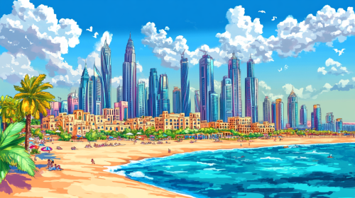 "Draw a cartoon-style roller coaster symbolizing the tech industry. The left side shows the coaster climbing with bright colors and happy faces, representing the rise of dot-com, social media, and AI. The right side shows the coaster diving down in darker colors with surprised faces, depicting the busts and challenges. Set this against a simple, futuristic city background for contrast." --ar 2:1