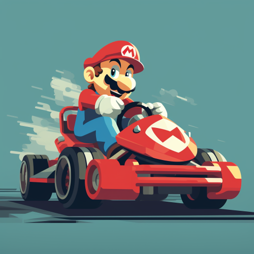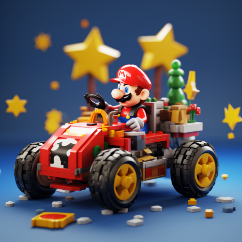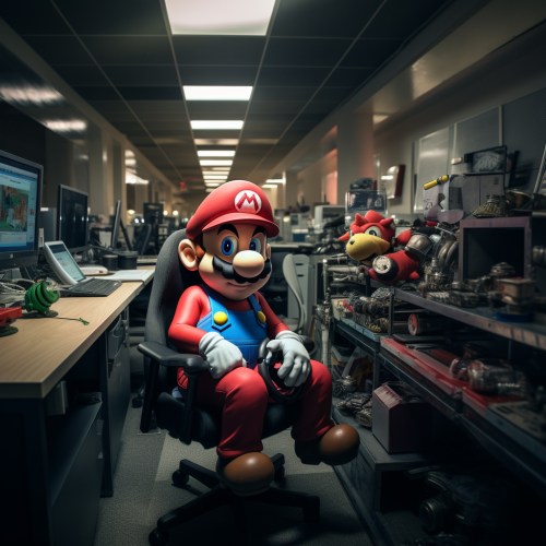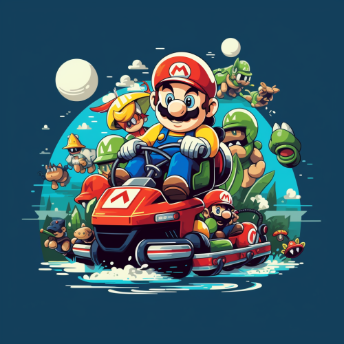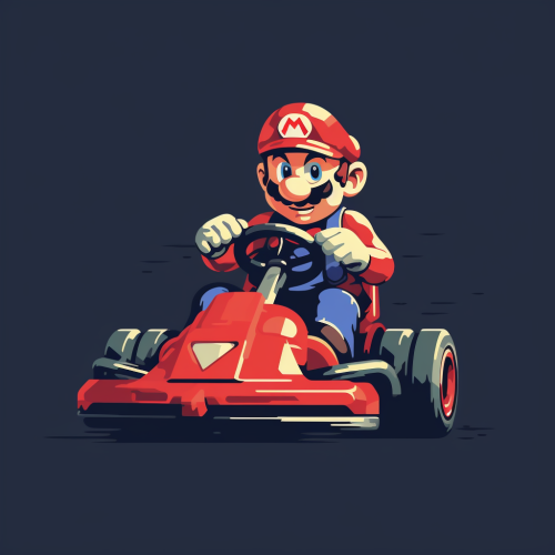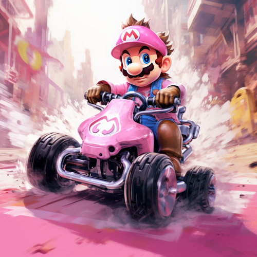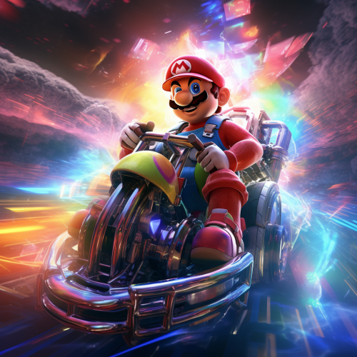 In Mario's world, Batman might wear a colorful, pixelated costume with a cap resembling Mario's iconic hat. Instead of a cape, he could have a dynamic pixelated trail, and his utility belt might store power-ups like mushrooms and fire flowers. The Batmobile could be a stylized kart equipped with various gadgets from the Mushroom Kingdom.