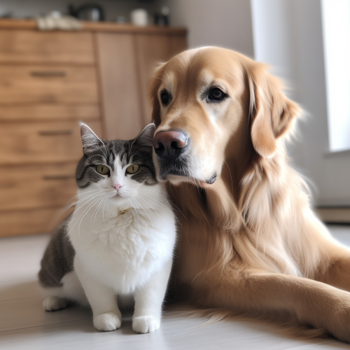 I need a logo design for a veterinary practice for dogs and cats. The logo should be made in such a way that the dog and the cat are stylized and joined together so that a heart is formed inside them. Give a completely simple black and white solution. Do me the style of designer James Martin