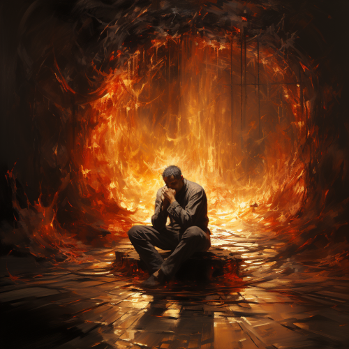 A cracked mirror: The mirror reflects a person’s face, but the reflection is fragmented. One side shows a face of pain, the other side reveals a peaceful, determined expression, realistic, --v 6.0 --ar 2:3