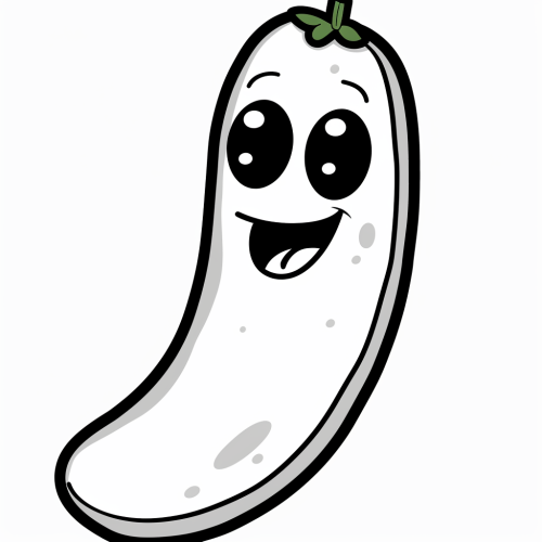 black & white cucumber with sweet black eyes and mouth clipart for newborns, high contrast, very simple, thick lines, one picture on site, pixar style --v 6.0 --style raw