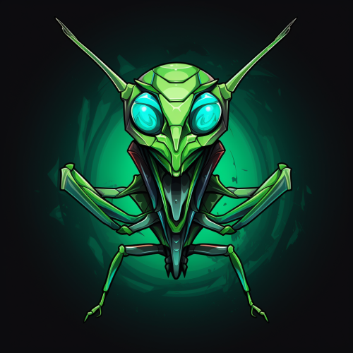 Design an original pokeman in the style of the pokeman legends, give features like praying mantis with horns, spikes on back running through to tail --s 750