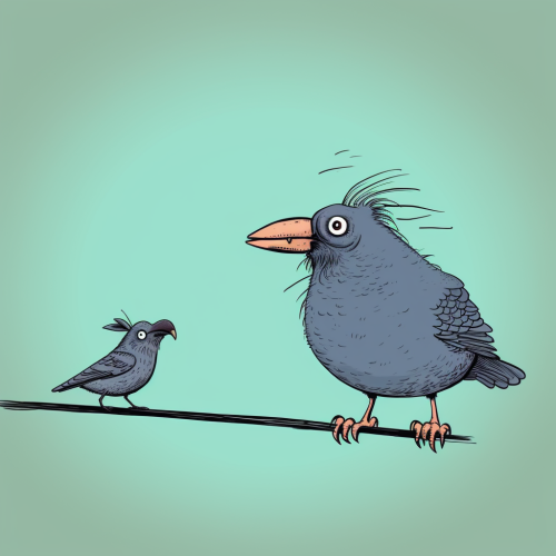 funny surreal cartoon line illustration of a a pigeon and a rat --s 50