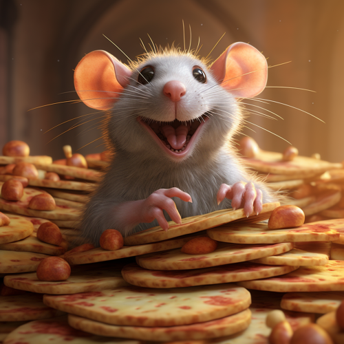 black background. a humorous cute white chipmunk with bulging eyes pulls a piece of cake. Pixar engine, cartoon caricature design. --stylize 250 --ar 179:220 --v 6.1