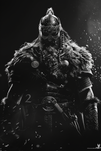 black background, black and white color, For Honor Viking, poster, --ar 2:3 --v 6.0